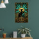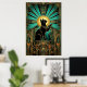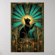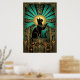 Art Deco Smaragd-Halo Smaragd-Thron-Katze Poster