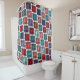Dieser Duschvorhang hat einen kunstvollen Deko-Design von Quadraten aus überlappenden Winkeln in Retrotönen in Blau und Rosa.