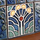 Channel the bold sophistication of the Art Deco era with this striking ceramic tile. The design features a perfectly symmetrical, stylized tree motif with a sunburst or fan-like spread. Deep navy blue and dusty sage green provide a cool, elegant base, beautifully contrasted by warm, amber-yellow blossoms and a central, eye-catching terracotta red circle. Each colored section is crisply defined by raised, off-white lines with a subtle bronze edge, reminiscent of classic cloisonné or stained-glass artistry. This tile is a testament to geometric precision and organic inspiration, making it a perfect accent for a historic home or a touch of vintage flair in a modern space.