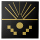 Eine goldene Sonne erhebt sich in einem schwarzen Himmel.