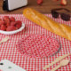 Art-Deco-Tapeten-Muster, dunkelrot und rosa Pappteller