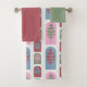 Dieses Handtuch-Set ist mit einem grünen Waschlappen, einem Handtuch aus der Rübe und einem Badehandtuch mit einem Deko-Design aus wiederholten Kuppelformen und Baumformen ausgestattet. Wenn Ihnen das Design gefällt, aber andere Farben bevorzugen, dann schreiben Sie mir.