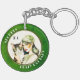 Schlüsselanhänger mit einer Aquarellmalerei im Art-Deko Gatsby-Stil einer geheimnisvollen Dame mit ihrer Katze (oder Ihr individuelles Foto), gerahmt von einer künstlerisch grünen Futter.