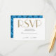 Kehren Sie mit einer modernen blauen Drehung zurück in die Großen Gatsby Roaring Zwanziger. Goldfarbene Art Déco Stil maßgeschneiderte Hochzeitsgestaltung. Ändern Sie die Informationen ganz einfach für sich. Auf der Rückseite sind die Initialen von Braut und Bräutigam.