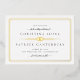 Der Deko Save the Date mit Art Deco inspiriert realer Goldfolienrand, klassischen Schriftart und einem Single-Foto auf der Kartenrückseite. Schwarz-Weiß, Marineinfassung und Weiß, Bräune und Weiß.