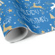 Machen Sie Ihre Urlaubsgeschenke mit individuelle Name-Packpapier ganz besonders. Dieses elegante Design besticht durch Vintage Illustrationen, die durch die Opulenz der Art-Déco-Ära inspiriert wurden. Es umfasst spitzende Rentiere, festliche Weihnachtsbäume und Sterne, gepaart mit stilvoller Retro-Typografie. Personalisieren Sie die Vorlage mit dem Namen des Empfängers oder Ihrem Familiennamen. Ein einzigartiges Design, das zeitlosen Stil mit einer modernen Drehung verbindet! Dieses nahtlose Muster-Geschenkpapier ist mit matter oder glänzender Oberfläche erhältlich. Druckfarben: blau, weiß und goldfarben.