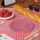 Art Deco-Wellenmuster - rot und fuchsia Pappteller