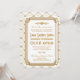 Diese Einladungen für Hochzeitsfeiern sind mit einer weißen und goldenen Farbpalette, einem geometrischen Rahmen, geometrischen Mustern und anderen stilistischen Details inspiriert, die alle von Art Deco und den rauschenden Zwanziger Jahren. Sie können die Textfelder des Beispiels nach Ihren Wünschen anpassen.