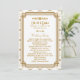 Diese Hochzeitsprogramme sind mit einer weißen und goldenen Farbpalette, einem geometrischen Rahmen, geometrischen Mustern und anderen stilistischen Details inspiriert, die alle durch Art Deco und die rauschenden Zwanziger Jahre. Sie können die Textfelder des Beispiels nach Ihren Wünschen anpassen.