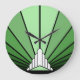 Ein klassisches Art Deko-Stil Sonnenmuster in Grün. Ein ikonisches Sonnenbild, das hinter einem stilisierten Deko aus dem Gebäude aufgeht. Ein schlichtes und dennoch elegantes Design, das der Zeit gerecht wird.