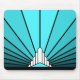 Ein klassisches Deko-Sonnenmuster, das in Aqua entworfen wurde. Ein ikonisches Sonnenbild, das hinter einem stilisierten Deko aus dem Gebäude aufgeht. Ein schlichtes und dennoch elegantes Design, das der Zeit gerecht wird.