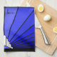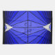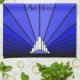 Ein klassisches Art Deko-Stil Sonnendeck in Blau. Ein ikonisches Sonnenbild, das hinter einem stilisierten Deko aus dem Gebäude aufgeht. Ein schlichtes und dennoch elegantes Design, das der Zeit gerecht wird.