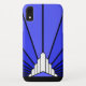 Ein klassisches Deko-Solo-Muster in Blau. Ein ikonisches Sonnenbild, das hinter einem stilisierten Deko aus dem Gebäude aufgeht. Ein schlichtes und dennoch elegantes Design, das der Zeit gerecht wird.