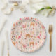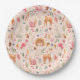 Natur in rosa Party Papier Teller mit der niedlichen kleinen Schnecke, Igel, Hirsch, und Hasen. Die Farben sind hellrosa, dunkelrosa, hellgrün und goldbraun.
