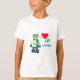 Dies ist ein niedliches Shirt für Ihr kleines Mädchen, das in diesem Jahr zur Schule zu tragen! Ein Cartoon-Frosch, der einen zeichnend hält, den sie gerade kreiert hat, mit einem roten, bemalten Herz und einigen grünen Sternen in Farbe 'Splotches'... und die Worte "Art Lover! Text ist anpassbar. Cool!