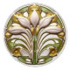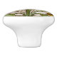 Dieses Imitat Relief Keramik Drehknopf zeigt eine Art Nouveau Stil symmetrische abstrakte Blume in Weiß mit Gold und grüne Hintergrund Ornamente.