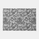 Doormat in einem William Morris-Design von stilisierten Akanthus-Blätter und Bachelor-Knopfblüten, digital verbessert und in Weiß, in schwarz umrissen, auf einem grau/grauen Hintergrund
