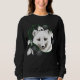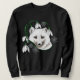 Ein arktischer Fuchs blickt in diesem inspirierten Jugendstil-Portrait nach außen. Vier Blume umkreisen den Fuchs mit weißen Schneeflocken. Set vor schwarzem Hintergrund