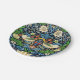 Papier-Teller in William Morris, Jugendstil-Wandbild mit dem Titel "Der Strawberry-Dieb", aus stilisierten Vögeln, Blume, Erdbeeren und Blätter, digital verstärkt und in sanften Blautönen, Grün, Beige und Bräune auf dunkelblauem indigoblauem Hintergrund gehalten