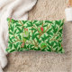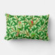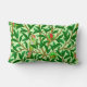 Kissen im William Morris Art Nouveau Wandteppich exotischer Vögel in einem Granatapfelbaum mit smaragdgrünen Blätter, Vögeln und Früchten in Kalkgrün und Rubinrot, mit pastellfarbenem Kalkboden