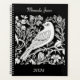 Planer in einem Jugendstil inspiriert Bild eines kleinen Vogels, der auf einem Zweig steht, umgeben von Blume, in Weiß auf schwarzem Hintergrund - mit bearbeitbarem Namen und Jahr