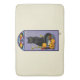 Eine schwarze Katze sitzt auf einem Haufen Bücher mit roter Kerze, Kürbissen, mit Augen Sushi und einem Schmetterling aus Fleckglas in lila und hellgelber Umgebung.