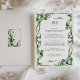 Diese exquisite Hochzeitsinfo-Karte ist ein Beleg für den Jugendstil, mit eleganten Calla-Lilien, die sich in einer natürlichen Schönheit aufreihen. Der Aquarelleffekt verleiht den verschiedenen Farbtönen von Jade, Waldgrün und blassem Olivenöl Leben, die mit cremefarbenen, weißen Blume verwoben sind, die vor dem Hintergrund der Pergamente zu leuchten scheinen. Diese Einladungssuite ist ideal für Paare, die die Verschmelzung von Kunst und Natur schätzen, mit einer Touch von Eleganz, die durch die kurvilinearen Formen und Bio Motive, die für die Jugendstil-Bewegung charakteristisch sind, verliehen wird.