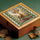 Lassen Sie sich von der zeitlosen Schönheit der Jugendstil-Epoche in unserer exklusiven Keramik-Kachel verzaubern. Dieses einzigartige Stück zeigt 'Clair de Lune', eine von Alphonse Muchas faszinierenden Lithographien aus dem Jahr 1902. Muchas Illustration, bekannt für seine ikonischen Beiträge zur Jugendstil-Bewegung, strahlt ätherischen Charme und zauberhaften Reiz aus. Unsere Kunsthandwerker haben diese himmlische Schönheit mit sorgfältig gestalteten Edelweiss-Blume-Ornamenten gerahmt, die die natürliche Ästhetik des Motivs verstärken. Edelweiss, ein Symbol für Mut und Reinheit, ergänzt die Mondmuse in 'Clair de Lune', was zu einer harmonischen Mischung aus Kunst und Eleganz der Natur führt. Diese Keramik-Kachel ist ein Geschenk für Kunstliebhaber oder eine raffinierte Ergänzung Ihres eigenen Raumes, die die verzaubernden Narrative und faszinierende Bilder der Jugendstil-Epoche verkörpert.
