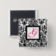 ART NOUVEAU DAMASK SQUARE MONOGRAM, rosa Fuchsia Button