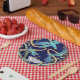 Jugendstil-Stil mit zeitgenössischer Drehung mit Libellen, Lilie des Tales und Lotusblüte. Das Design ist lebendig und dennoch elegant, mit coolen und frischen Farben wie Marine, Goldtönen, Pfirsich, Grün und Weiß. Originale Kunstwerke und Oberflächenmuster von L. Diane Johnson.
