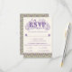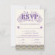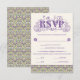 An elaborately detailed Art Nouveau design featuring a pattern of lilac lovebirds and lavender butterflies in profile perched atop scrolling vines of purple thistle on a pale yellow background. A pairing of elegant fonts has been carefully selected to accompany this card's decorative floral text, however, they can be changed to meet your needs. You can also change their wording and colors, as well as the color of the RSVP text, and hide any unnecessary choices in the editing panel.