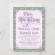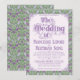 An elaborately detailed Art Nouveau wedding invitation featuring a pattern of lilac lovebirds and lavender butterflies in profile perched atop scrolling vines of purple thistle on a light green and cream dotted background. A pairing of elegant fonts has been carefully selected to accompany this invitation's decorative floral announcement text, however, they can be changed to meet your needs. You can also change their colors, as well as the color of the announcement text.