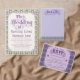 An elaborately detailed Art Nouveau design featuring a purple thistle scroll and vine striped pattern on a light yellow background with intricate yellow details. A pairing of elegant fonts has been carefully selected to accompany this card's decorative floral RSVP text, however, they can be changed to meet your needs. You can also change their wording and colors, as well as the color of the RSVP text, and hide any unnecessary choices in the editing panel.
