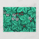 Jugendstil-Postkarte aus Erdbeeren-Pflanze, mit Blätter, Blume und Beeren, auf der Grundlage eines Vintagen William Morris Textildesigns, digital verbessert und farbig in Türkis / Pfau, mit tiefblauem aquamarinem Hintergrund und einem Akzent von magentafarbenen rosa Beeren