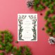 Art Nouveau Floral Frame, Foil Wedding Invitation. Moss green and blush color palette with soft beige background.