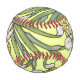 Schöne Jugendstil Vintage botanische Kunst der Iris Blume und Blätter ist auf diesem Baseball. Das Bild ist aufgrund des abgelaufenen Urheberrechts öffentlich zugänglich.