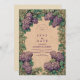 Dieses romantische und zeitlose Jugendstil-Hochzeitsdesign besticht durch üppige lila Blüten in sanften, lila Farbtönen, gerahmt mit elegantem grünem Blattwerk auf Vintagem Hintergrund. Der verzierte botanische Stil verbindet klassische Kunst mit natürlicher Schönheit und eignet sich ideal für Frühjahrsfeiern, Gartenzeremonien oder Paare, die blumengeschmückte Eleganz mit einer Touch Nostalgie Liebe. Vollständig anpassbar mit Ihren persönlichen Daten.