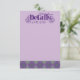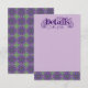 An elaborately detailed Art Nouveau details card with an elegant purple decorative font, with a bottom border of intricate tiles of purple thistle with green accents. The back of this card's design consists of the same pattern. The decorative floral announcement text color can be changed to meet your needs.