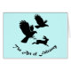 Die Silhouette von zwei Harris Hawks, die ein Jackhasen mit den Worten The Art of Falconry unten verfolgen.