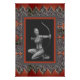 Dieses Wandplakat zeigt ein Foto einer Keramik-Skulptur der Göttin Artemis. Das war eine Skulptur, die ich in den 1990er Jahren machte. Das Foto ist schwarz-weiß. Die Grenze ist rot und silber. Die Grenze ist meine handgefertigten Fliesen, die digital bearbeitet werden.