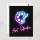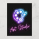 Cool postcard with the look of neon. Purple / blue neon artist palette with "art studio" in pink - perfect for personal use, or as business advertisement.