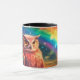 Diese Tasse hat einen Regenbogen und eine Eule darauf abgebildet.