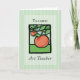 Lass deinem Kunstlehrer, dass du die Arbeit, Unterstützung und Beratung schätzt. Ein Apfel repräsentiert den Lehrer, und hellgrüne Streifen füllen den Hintergrund.