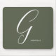 Artfully Monogrammed Script Letter G Chive Green Mousepad