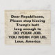 Sehr geehrte Republikaner, hören Sie bitte auf, Trumps Hintern lange genug zu küssen, um IHRE ARBEIT zu übernehmen. SIE ARBEITEN FÜR UNS. Liebe, Amerika schreiben Sie Ihren Kongressabgeordneten. Sag ihnen, sie sollen ihre Arbeit tun.