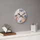 Die Wanduhr mit dem Bild der grünen Ölfarbe, die von einer Röhre auf die Leinwand eines Künstlers neben einer Skulpel- und Kunstpinsel gepresst wird. Anpassbar.