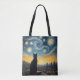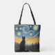 Add a touch of magic to your daily routine with our captivating "Starry Night Cat" tote bag! This isn't just a bag; it's a portable piece of art. The stunning design showcases a serene black cat perched on a rooftop, its elegant silhouette framed against a magnificent, swirling celestial canvas. Luminous stars dance in vibrant patterns above a cozy, illuminated town, evoking the awe-inspiring beauty of a dreamlike night sky.