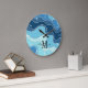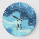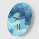 Chic multitonale abstrakte Ozeanblau Wellen gemusterte Uhr, mit einem Monogramm Bereich für Sie, um Ihren Namen und den ersten Start hinzuzufügen