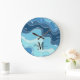 Artistic Blue Ocean Waves Beach Monogram Große Wanduhr