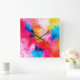 Wall clock featuring a vibrant abstract painting featuring soft, blended patches of color, in smooth transitions and harmonious aesthetic, Great for anyone wjo needs some vibrant art into his working or living space . Created by Alma Wad - the human designer in collaboration with Canva AI .